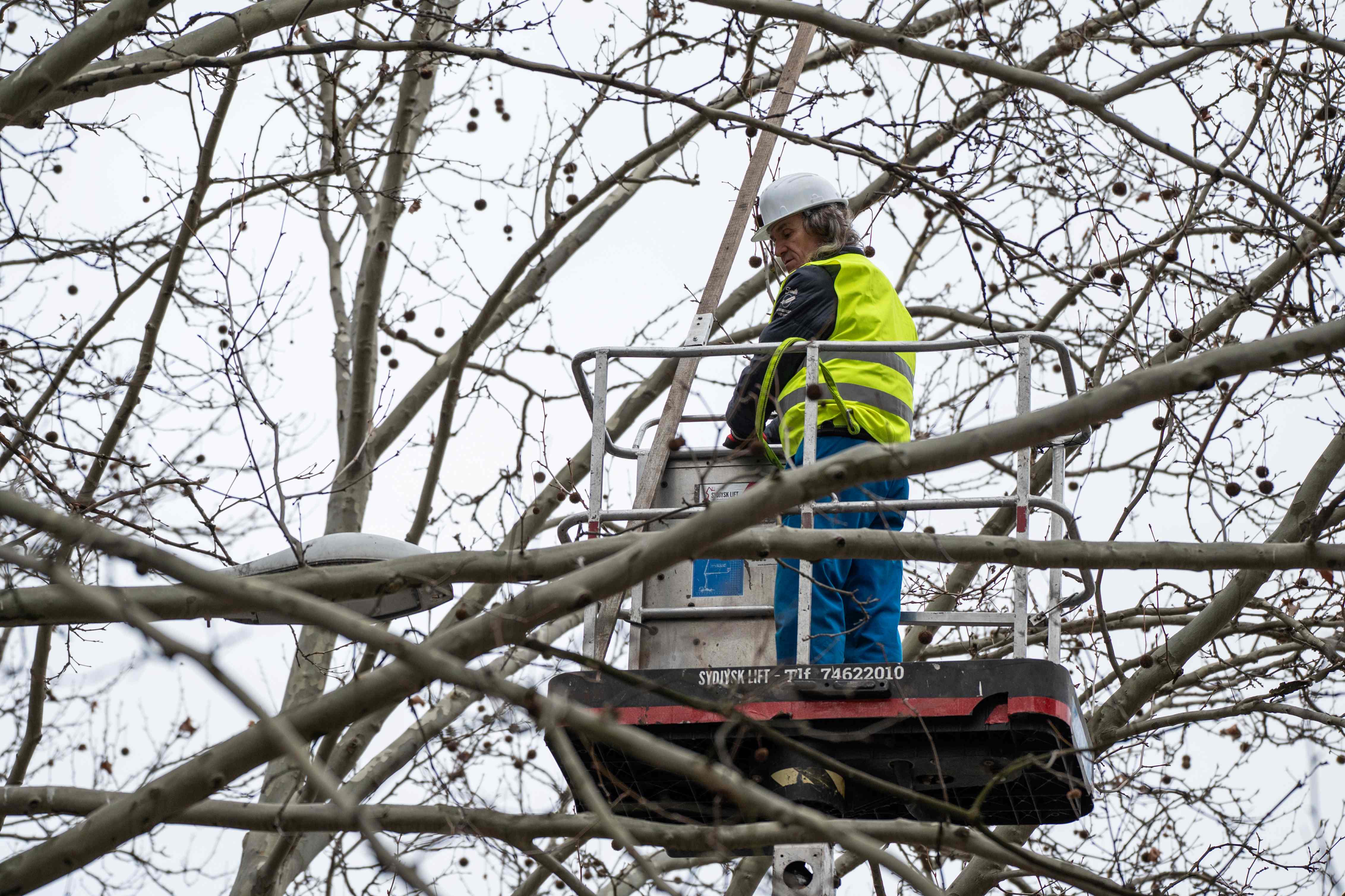 Az is meglepetés volt számomra, hogy nem tettünk rá ágakat, csak drótoztunk. Később derült ki, hogy ezekbe a kosarakba valódi varjúfészkek kerülnek majd: az eredeti helyükön leszedik, és az új területen felteszik őket a fákra.